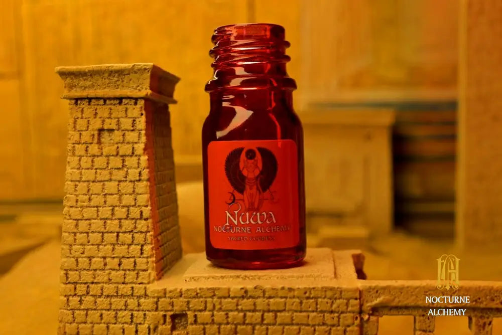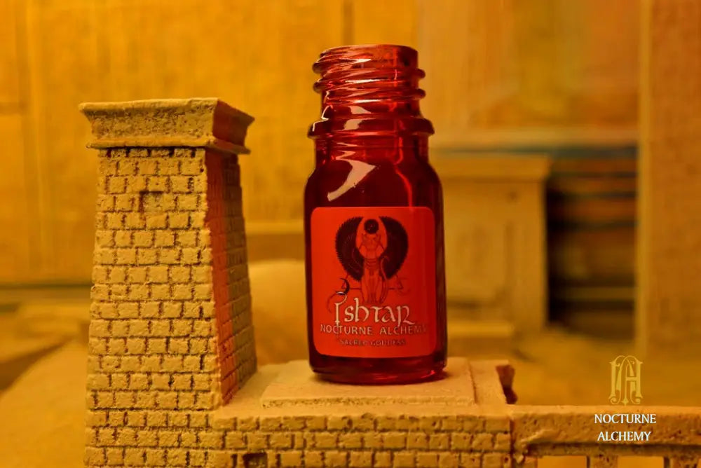 5ml hand-painted translucent red bottle with phenolic lid (no insert/reducer). A collaboration with eNVie parfum and Bastet. Sacred Goddess will return at the Spring Resurgence 2027 in traditional blue bottle only.