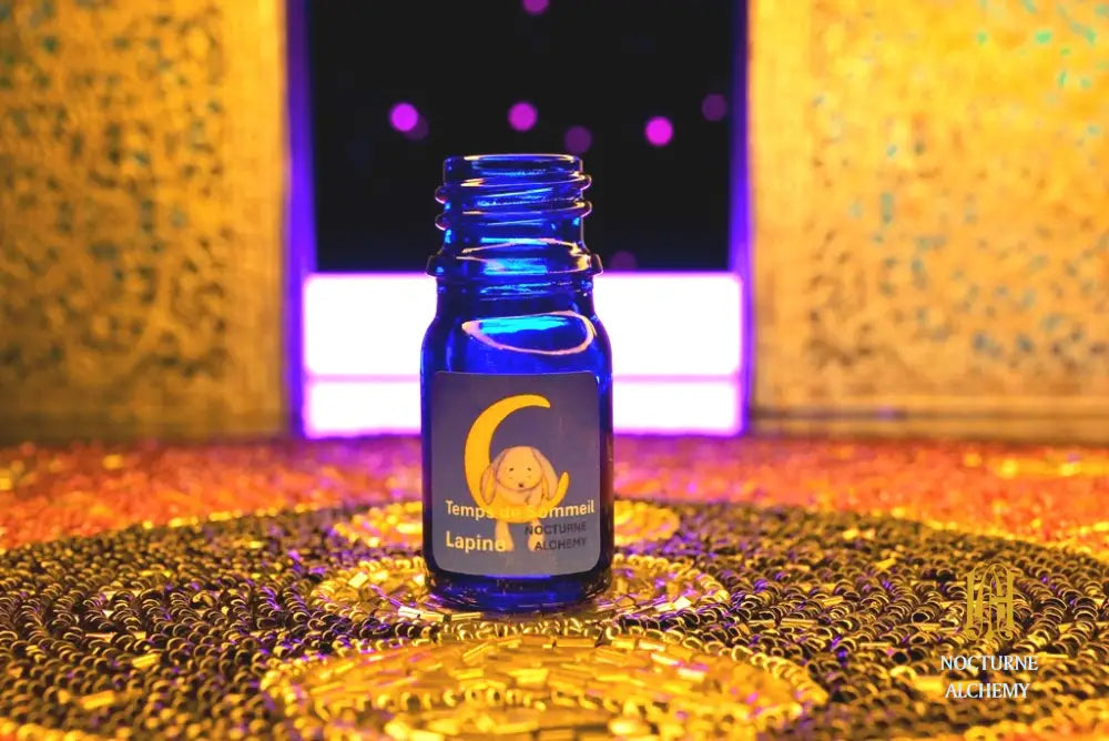Temps de Sommeil Lapine (Sleepy Time Bunny) – Rosewood, French Lavender, Bergamot Musk, Orange Zest, Lemon Zest, Ginger, Cedarwood, eNVie saphir (Egyptian Amber & Musk Resin purified into natural notes of blue balsamic Amber, sweet papyrus oil from Cairo, and Siam benzoin and pure vanillin), Moonstone (husk, fleck, and essence of African White Vanilla to bond with a dash of Crystalline Vanilla Musk), Bastet’s Musk (Tuberose, Mallow, Angelica, Musk Flower, and White Lily), Vetiver, and Pink Pepper