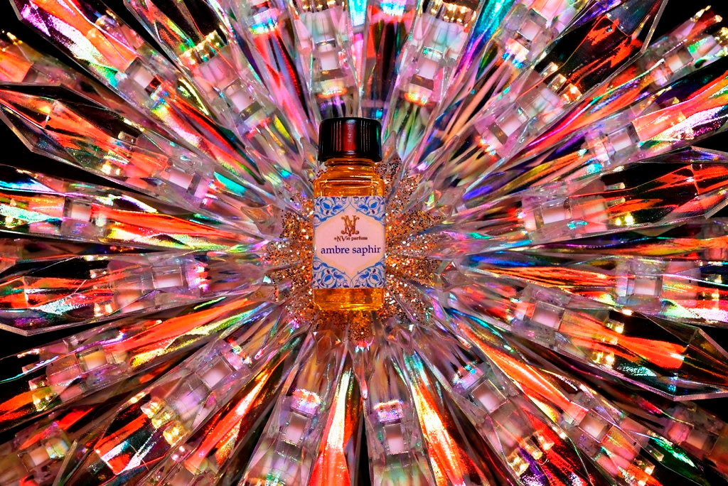 ambre saphir - Wood, Incense, Labdanum, Siam Benzoin, Vanilla Bean, Himalayan Cedar, Black Patchouli Leaves, raw tears of Frankincense, raw Myrrh wood, Agarwood, Cardamom fusing into the sweetness of White Amber, Saphir (Egyptian Amber and Musk Resin, Sweet Papyrus of Cairo, Blue Balsamic Amber, Siam Benzoin, and pure Vanillin), and Guaiac Wood