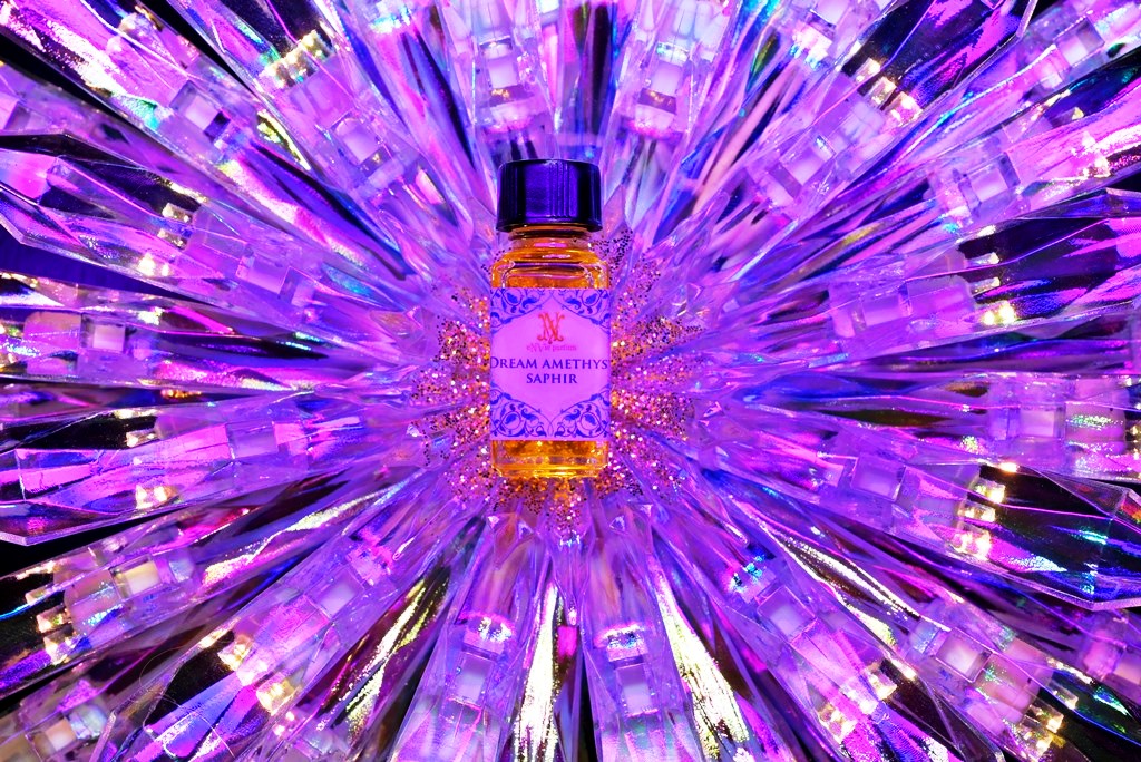 dream amethyst saphir - Wild Balsam of Peru Resin, Essence of Rose, Egyptian Lotus Blossom and Egyptian Jasmine, White Patchouli essence, French Vanilla Bean, Spanish Labdanum Oleoresin, Skin Musk, Egyptian Egyptian Amber and Musk Resin, Sweet Papyrus of Cairo, Blue Balsamic Amber, Siam Benzoin, and pure Vanillin