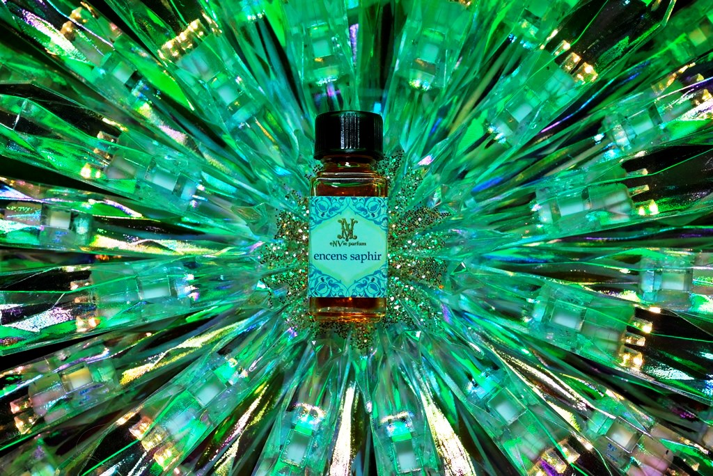 encens saphir - Incense, Egyptian Jasmine, White Clove of India, Italian Bergamot. Palo Santo from South America, Frankincense Olibanum Resin B. Carteri, Oakmoss, French Cedar essence, Raw Mahogany wood, aged Myrrh resin, Egyptian Amber and Musk Resin, Sweet Papyrus of Cairo, Blue Balsamic Amber, Siam Benzoin, and pure Vanillin