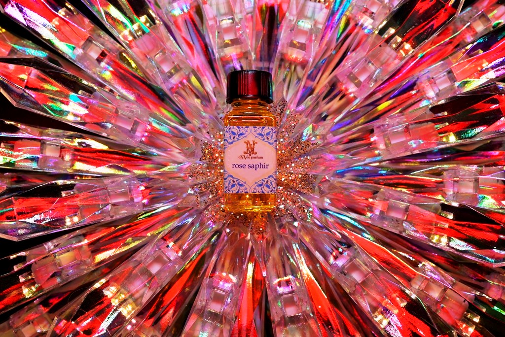 rose saphir - Rosewood Resin, Black Rose Petal essence, Blood Rose Petal essence and Egyptian Rose de Mai, Amber, Aged Rose Resin, Egyptian Amber and Musk Resin, Sweet Papyrus of Cairo, Blue Balsamic Amber, Siam Benzoin, and pure Vanillin